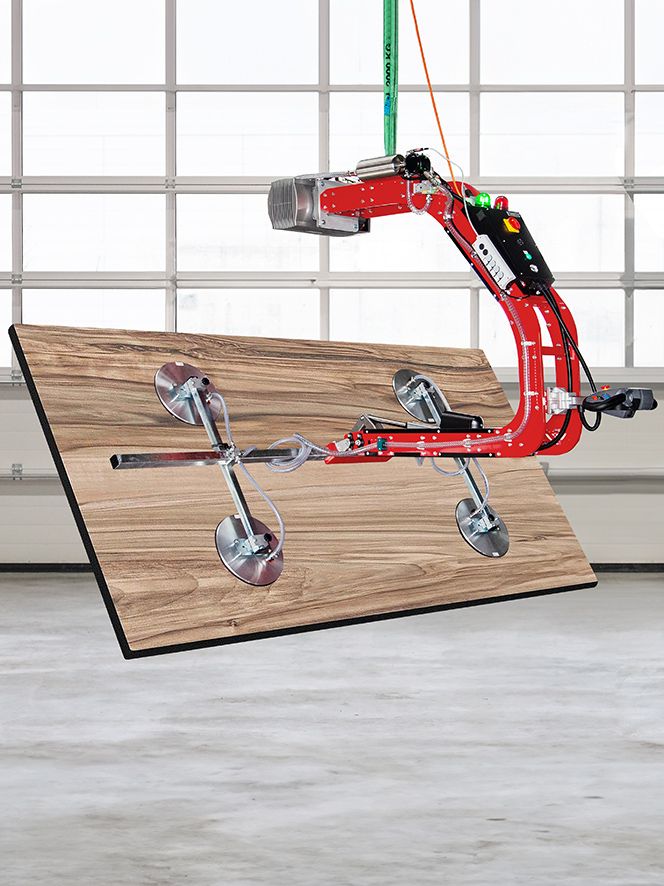 Unsere Handhabungstechnik integriert sich nahtlos in die häufig automatisierten Prozesse der Holzverarbeitung, sei es als Hebegerät, Portal oder Robotik-Erweiterung.