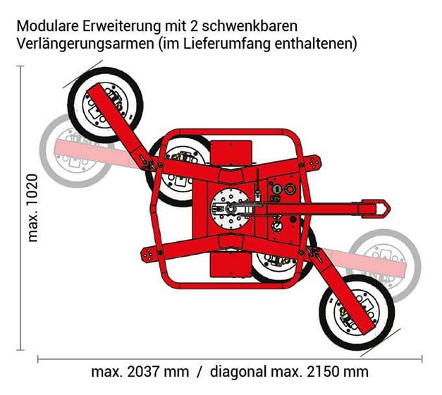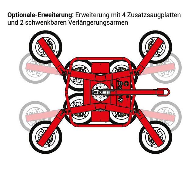 Verlängerungsarme und verstellbare Sauger - Komfortable Bedienung mit nur einer Person