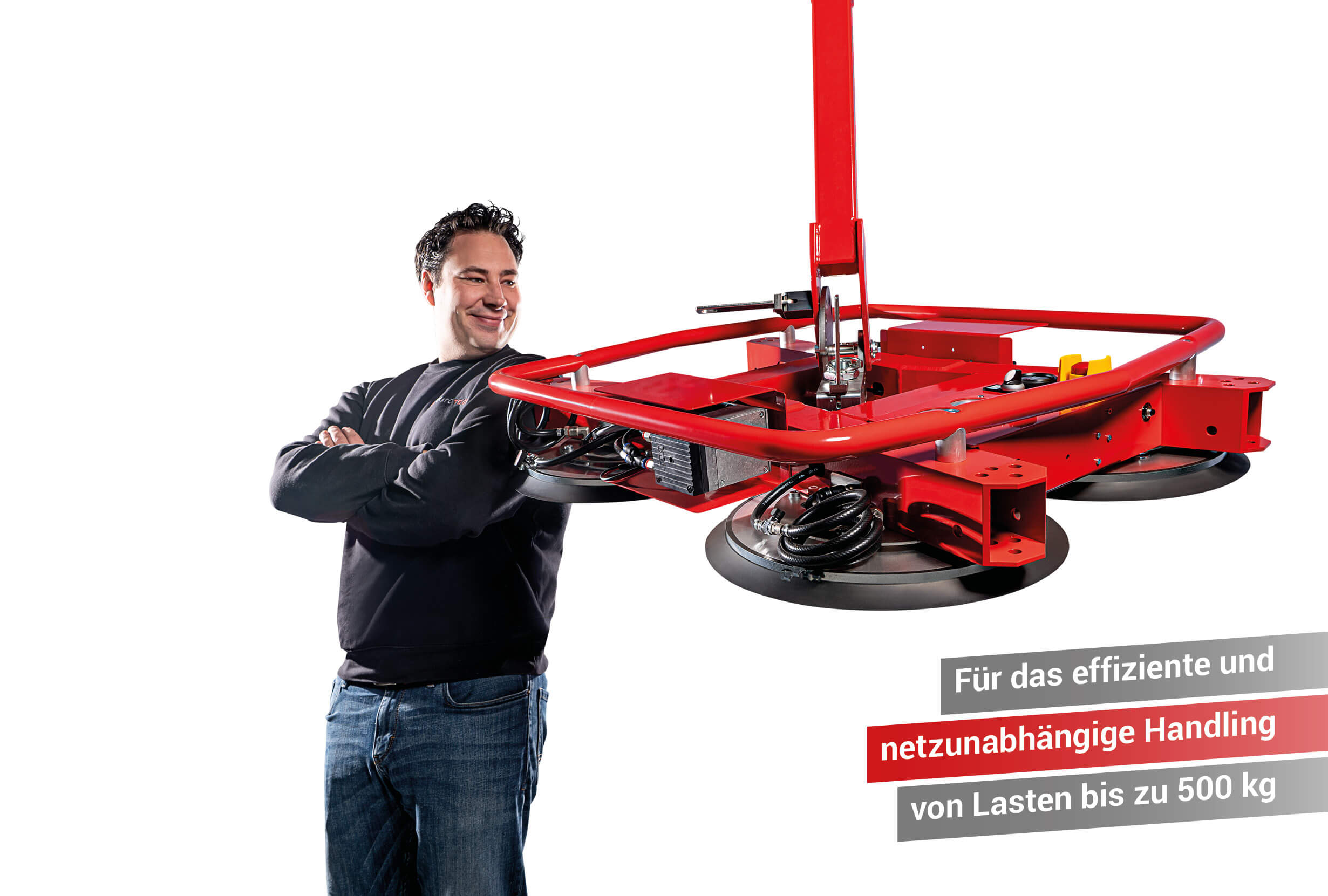 Bei der Handhabung von schweren und sensiblen Lasten bis zu 500 kg (erweiterbar auf 700 kg) wird zudem die Sicherheit und Motivation der Mitarbeiter deutlich gesteigert und verbessert.